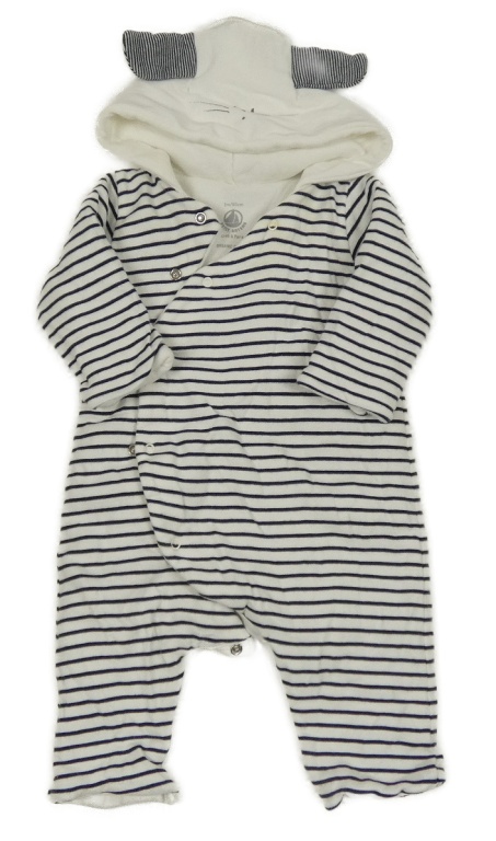 Bílo-tmavomodrá pruhovaná bavlněná zateplená kombinéza s kapucí Petit Bateau
