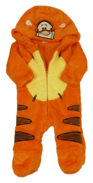 Oranžovo-žlutá plyšová podšitá kombinéza s kapucí - Tygr a kapucí Disney