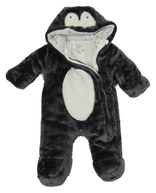Černo-bílá plyšová zateplená kombinéza s kapucí - tučňáček F&F