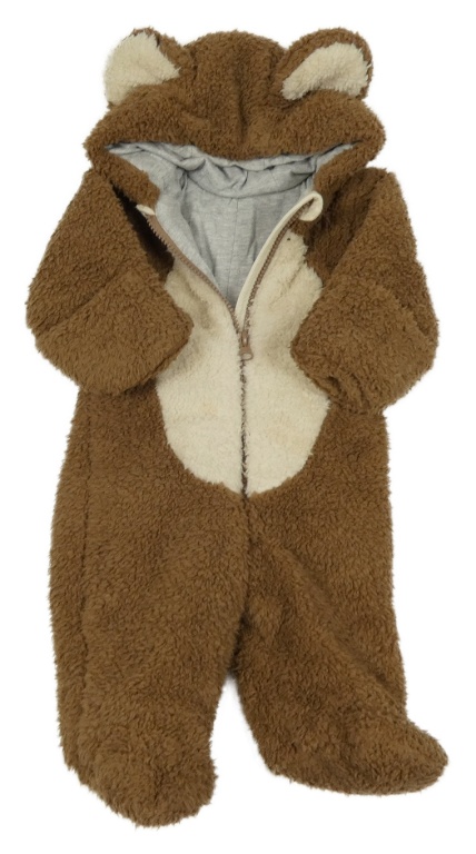 Hnědo-smetanová huňatá zateplená kombinéza s kapucí - medvěd M&S
