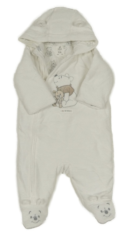 Bílá sametová žebrovaná zateplená kombinéza s medvídkem Pú a kapucí C&A
