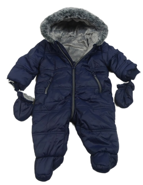 Tmavomodrá šusťáková zimní bunda s kapucí + rukavice George