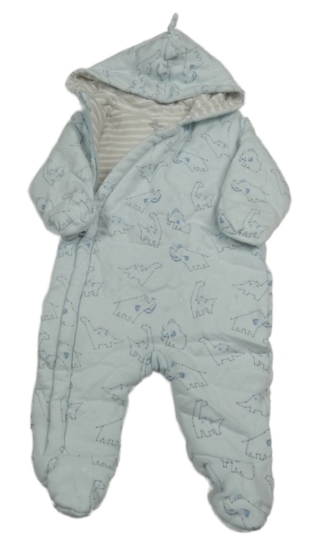 Světlemodrá zateplená kombinéza s dinosaury a kapucí Mothercare