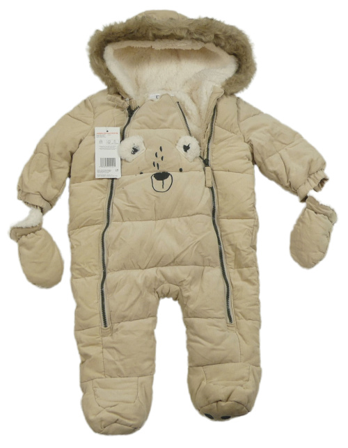 Nové - Pudrová manšestrová zimní kombinéza s medvědem a kapucí + rukavice F&F