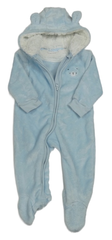 Světlemodrá chlupatá kombinéza s medvědem a kapucí