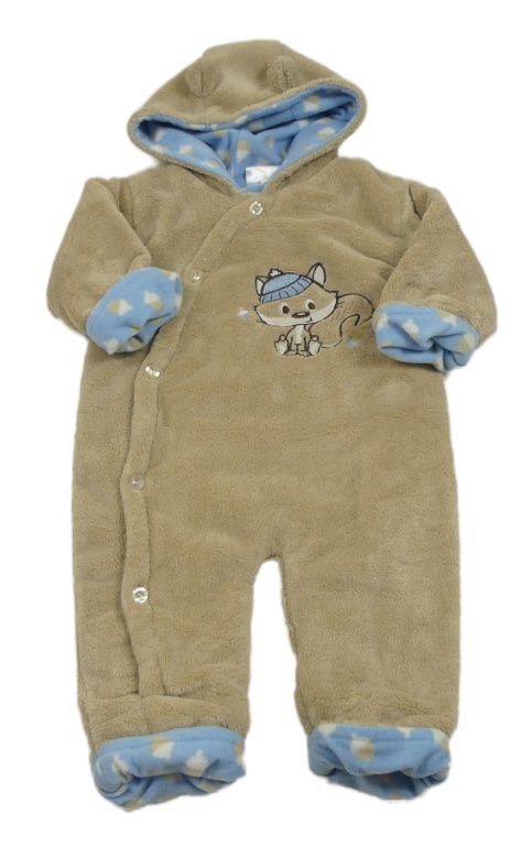 Béžová plyšová zateplená kombinéza s veverkou a kapucí Ergee