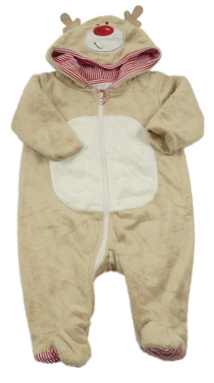 Béžovo-bílá chlupatá zateplená kombinéza s kapucí - sob