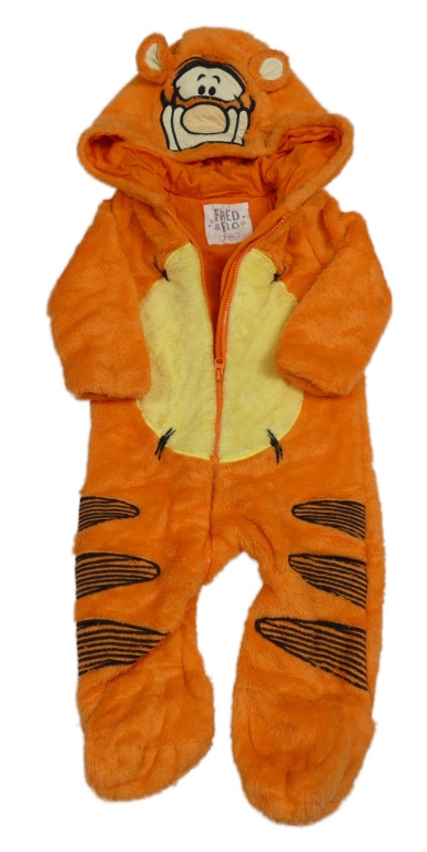 Oranžovo-žlutá chlupatá podšitá kombinéza s kapucí - Tygr F&F