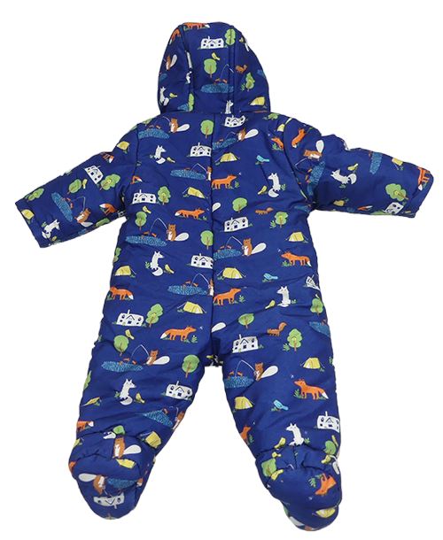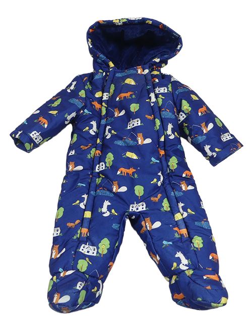 Tmavomodro-barevná šusťáková zimní kombinéza se zvířátky a kapucí John Lewis