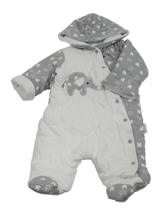 Bílo-šedá bavlněná zateplená kombinéza se slonem a kapucí