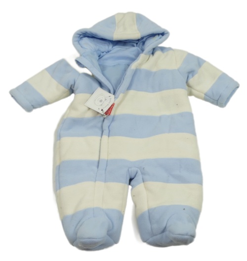 Nové - Světlemodro-bílá pruhovaná fleecová zateplená kombinéza s kapucí
