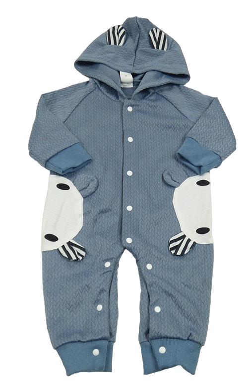 Modrošedá vzorovaná kombinéza s medvědy a kapucí Shein