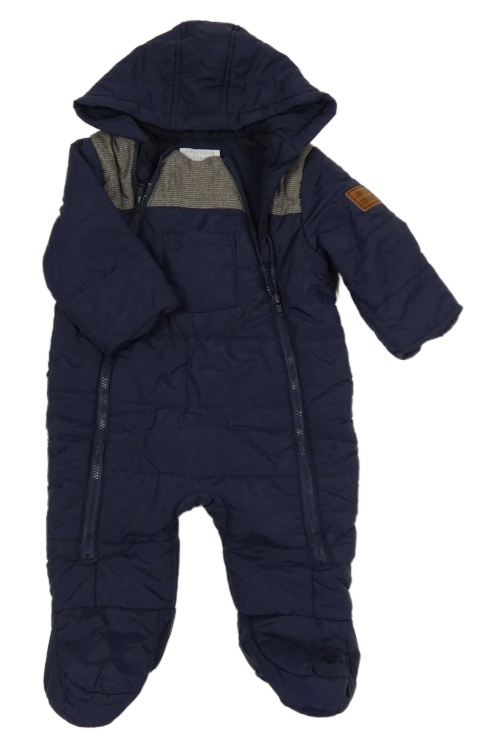 Tmavomodro-béžová šusťáková zimní kombinéza s kapucí Primark
