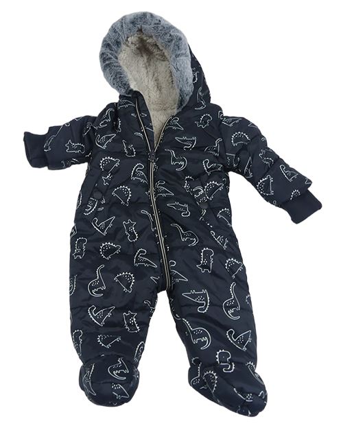 Černá šusťáková zimní kombinéza s dinosaury a kapucí George