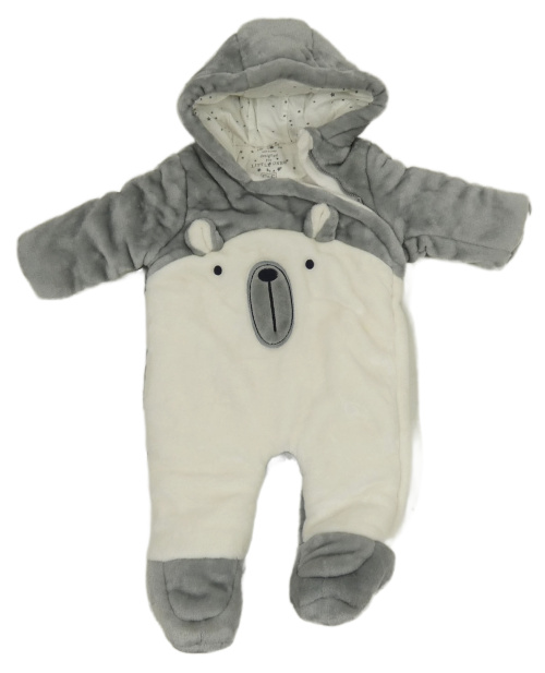 Šedo-bílá plyšová zateplená kombinéza s medvědem a kapucí F&F