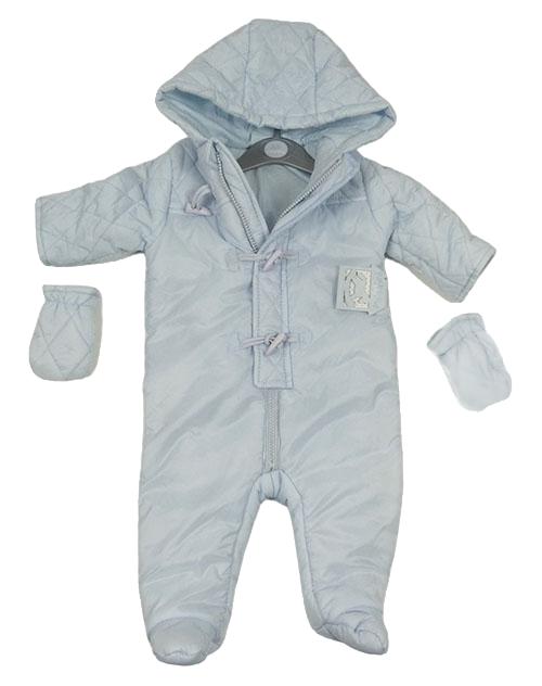 Nové - Světlemodrá šusťáková zimní kombinéza s kapucí + rukavice