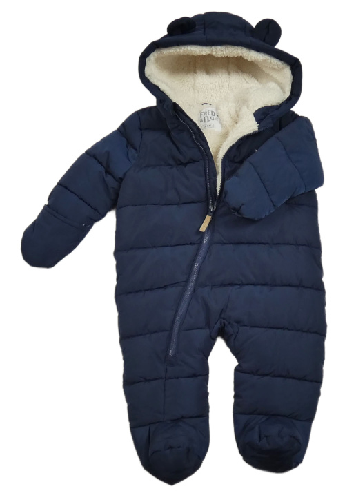 Tmavomodrá šusťáková zimní kombinéza s kapucí s oušky F&F