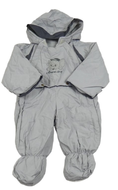 Šedá šusťáková zimní kombinéza se slonem a kapucí