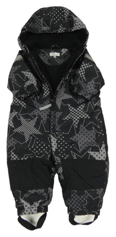 Černá šusťáková zimní kombinéza s hvězdami a kapucí KappAhl
