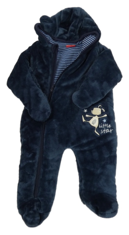 Tmavomodrá plyšová zateplená kombinéza s pejskem a kapucí s oušky SALT AND PEPPER