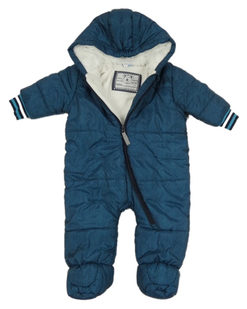 • Tmavomodro-modrozelená melírovaná prošívaná šusťáková zimní kombinéza s pruhy a kapucí Topomini