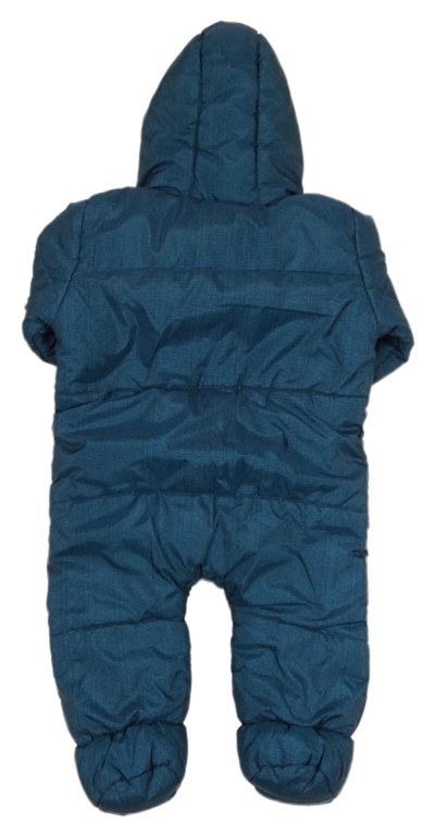 Tmavomodro-modrozelená melírovaná prošívaná šusťáková zimní kombinéza s pruhy a kapucí Topomini
