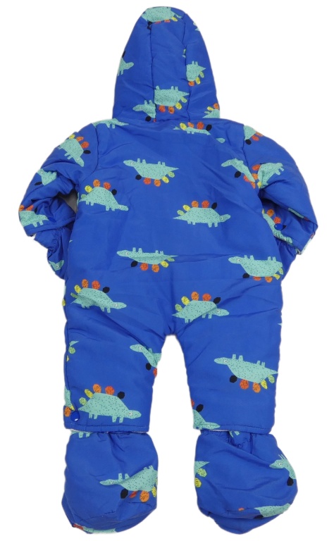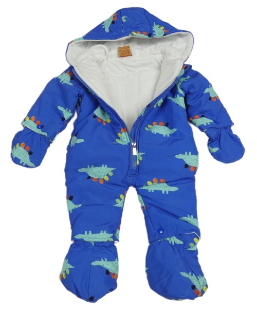 • Modrá šusťáková zimní kombinéza s dinosaury a kapucí + rukavice a capáčky Cheeky Chimp