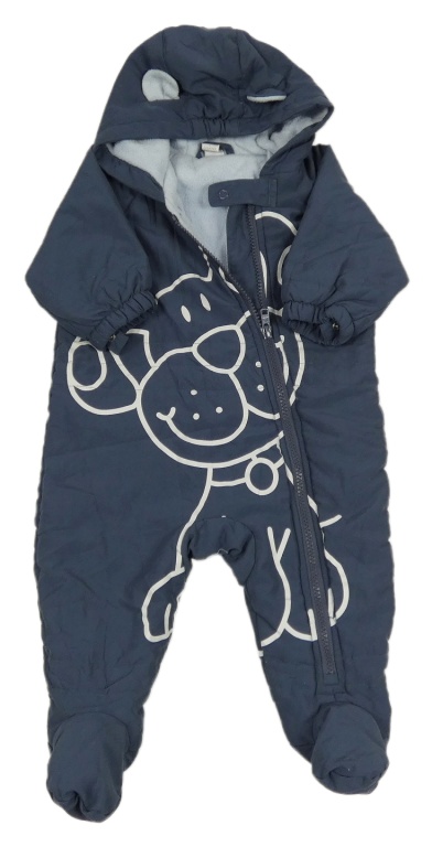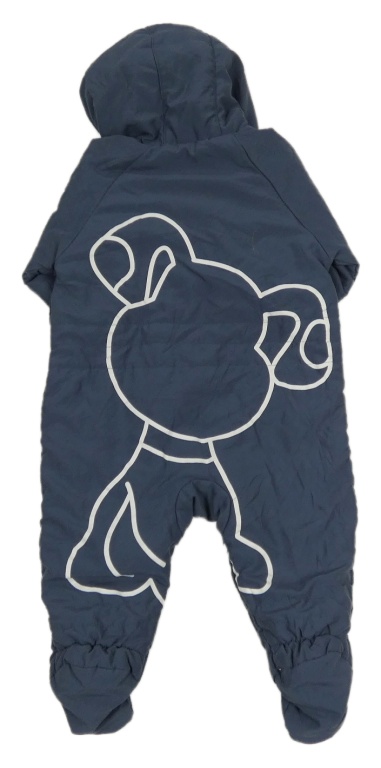 Tmavomodrá šusťáková zateplená kombinéza se psem a kapucí Next
