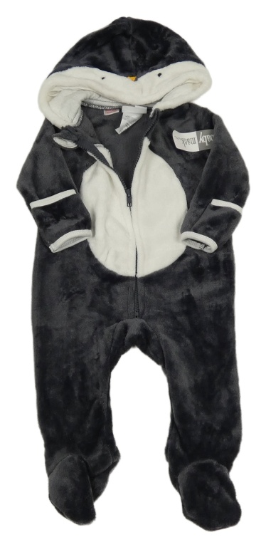 Nové - Tmavošedo-bílá plyšová kombinéza s kapucí - tučňák