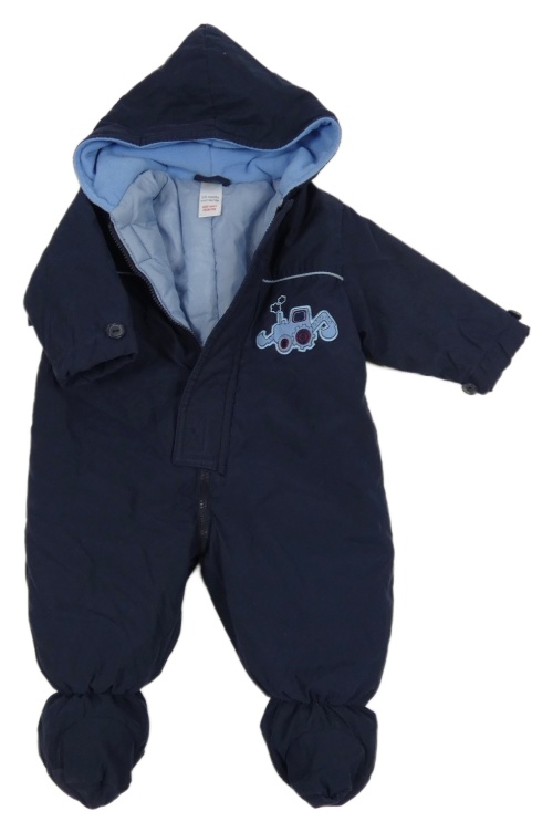 Tmavomodrá šusťáková zateplená kombinéza s bagrem a kapucí Baby Mac