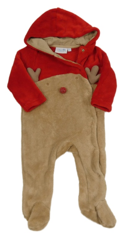 Béžovo-červená chlupatá kombinéza s kapucí - sob