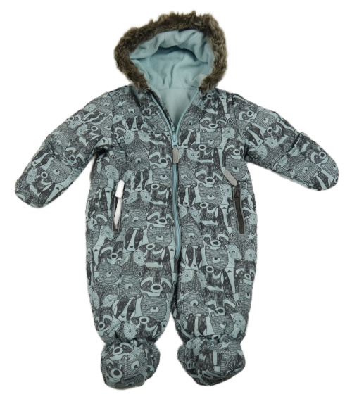 Modro-černá šusťáková zimní kombinéza s medvědy a kapucí Nutmeg