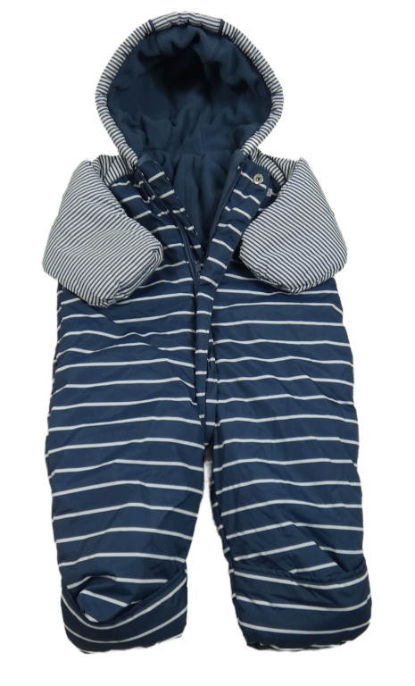 Tmavomodro-bílá pruhovaná šusťáková zimní kombinéza s kapucí Mothercare