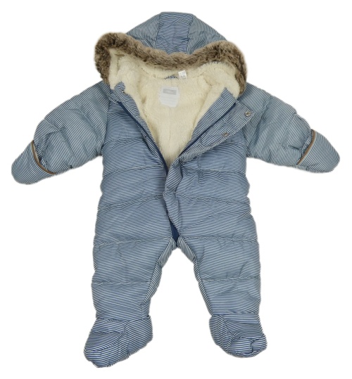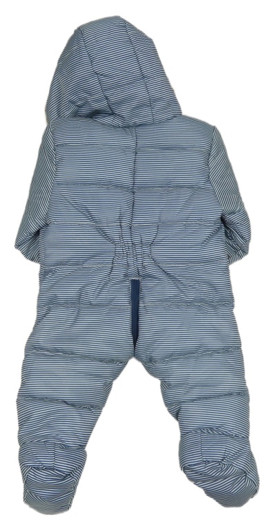 Tmavomodro-bílá pruhovaná šusťáková prošívaná zimní kombinéza s kapucí Obaibi