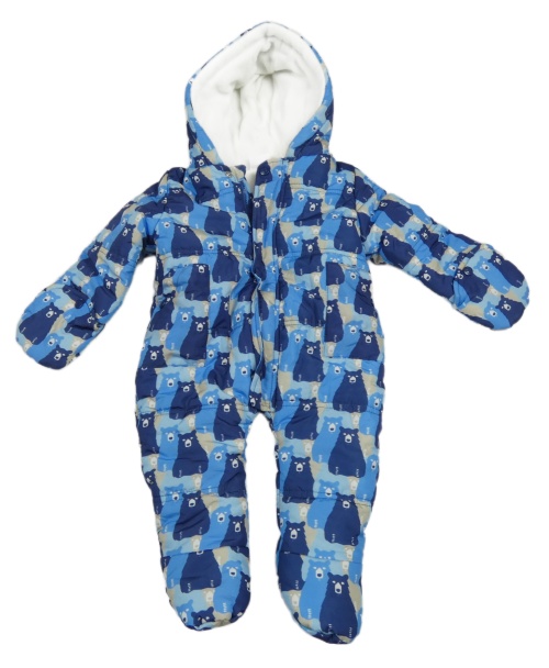Modrá šusťáková zimní kombinéza s medvědy a kapucí