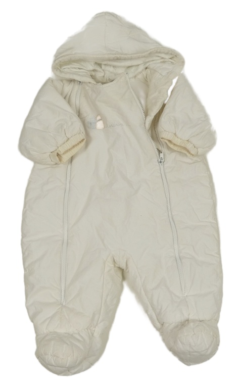 Bílá plátěná zateplená kombinéza s výšivkou a kapucí