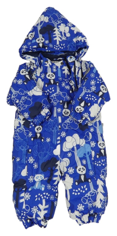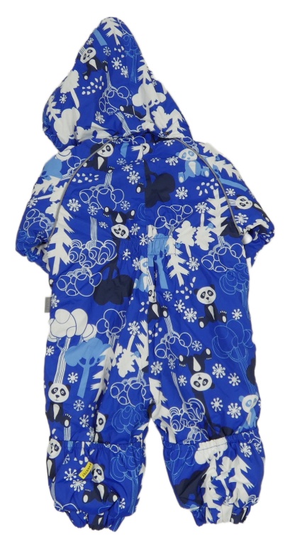 Modrá šusťáková zimní kombinéza s pandami a kapucí