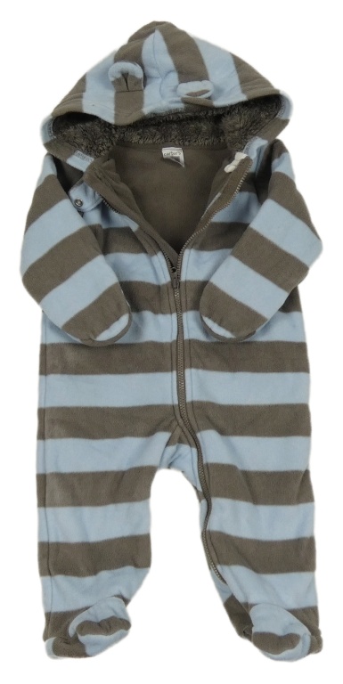 Hnědo-modrá pruhovaná fleecová kombinéza s kapucí Carter's
