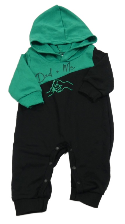 Černo-zelená tepláková kombinéza s potiskem a kapucí