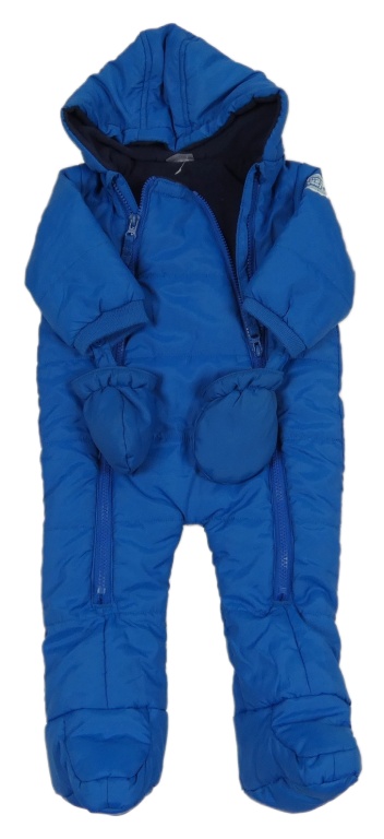 Modrá šusťáková prošívaná zimní kombinéza s kapucí + rukavice F&F