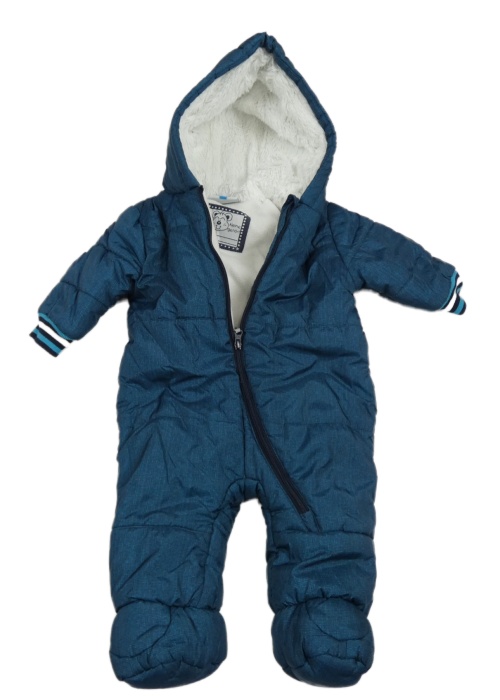 Tmavomodro-modrá šusťáková zimní kombinéza s kapucí Topomini