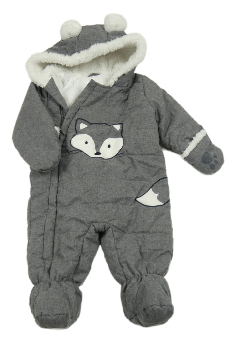 Šedá šusťáková zimní kombinéza s liškou a kapucí