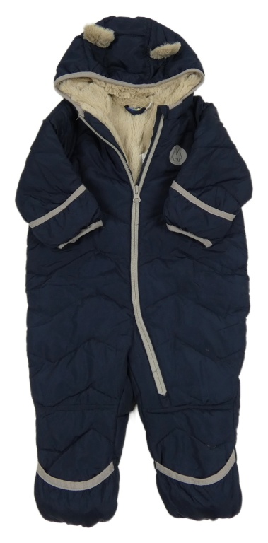 Tmavomodrá šusťáková prošívaná zimní kombinéza s kapucí Lupilu