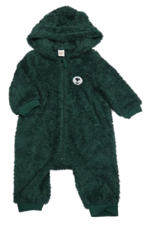Tmavozelená huňatá kombinéza s medvídkem a kapucí s oušky Cozy Pixies