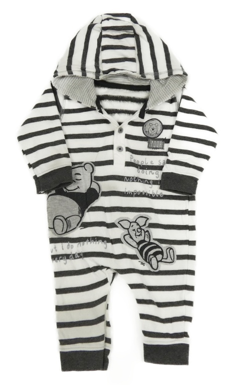 Šedo-bílá pruhovaná tepláková kombinéza s prasátkem a kapucí George