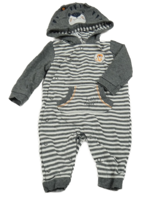 Šedo-bílá pruhovaná tepláková kombinéza s tygrem a kapucí C&A