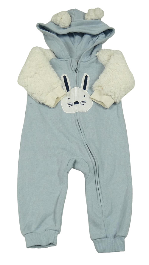 Světlemodro-smetanová teplákovo/huňatá kombinéza s králíkem a kapucí