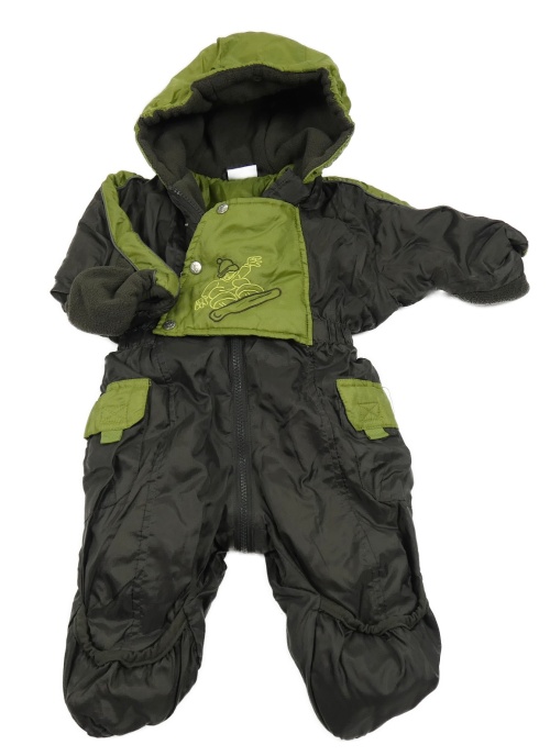 Šedo-zelená šusťáková zimní kombinéza s kapucí Impidimpi