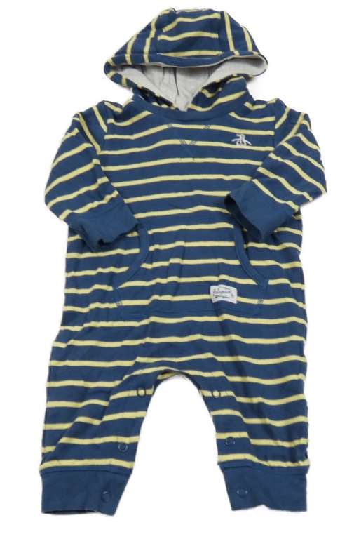 Tmavomodro-žlutá pruhovaná bavlněná kombinéza s kapucí Munsignwear