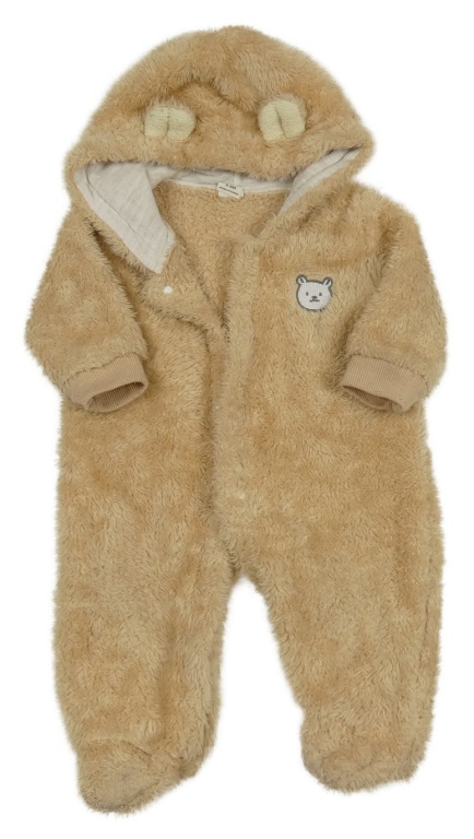 Béžová chlupatá kombinéza s medvědem a kapucí Shein